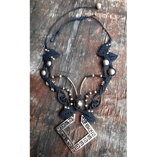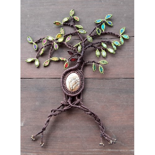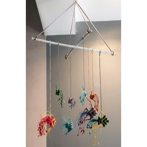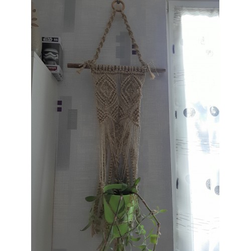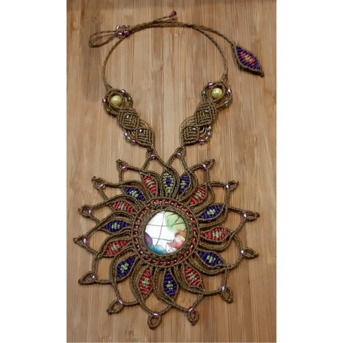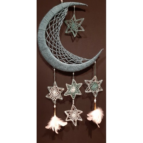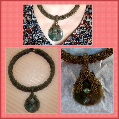 Avec mon équipe de fils, ciseaux, perles, et pierres nous créons tous les jours de nouvelles choses. Il y a des bijoux en micro-macramé tissés avec des fils de polyester cirés 1mm, des suspensions diverses, des décorations de saisons en macramé et des attrapes-rêves.