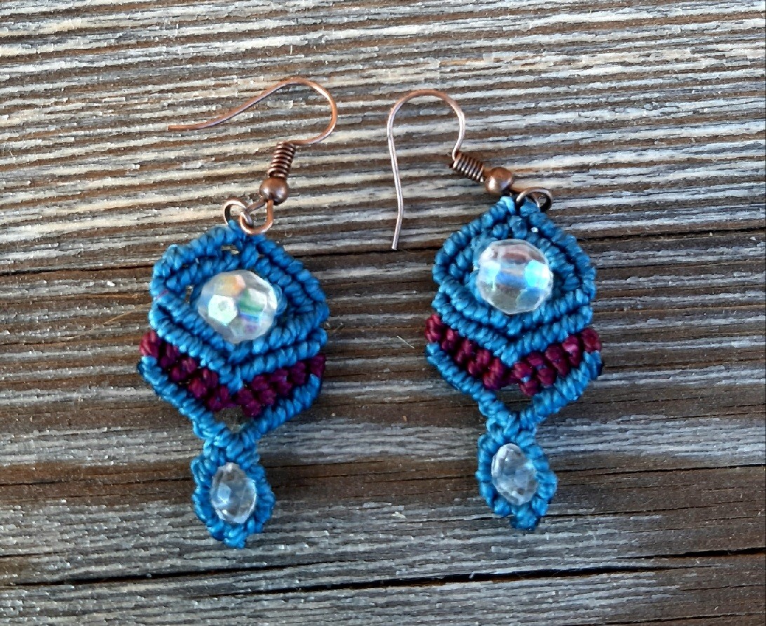 Fils de polyester cirés bleu canard et prune. Perles fantaisies