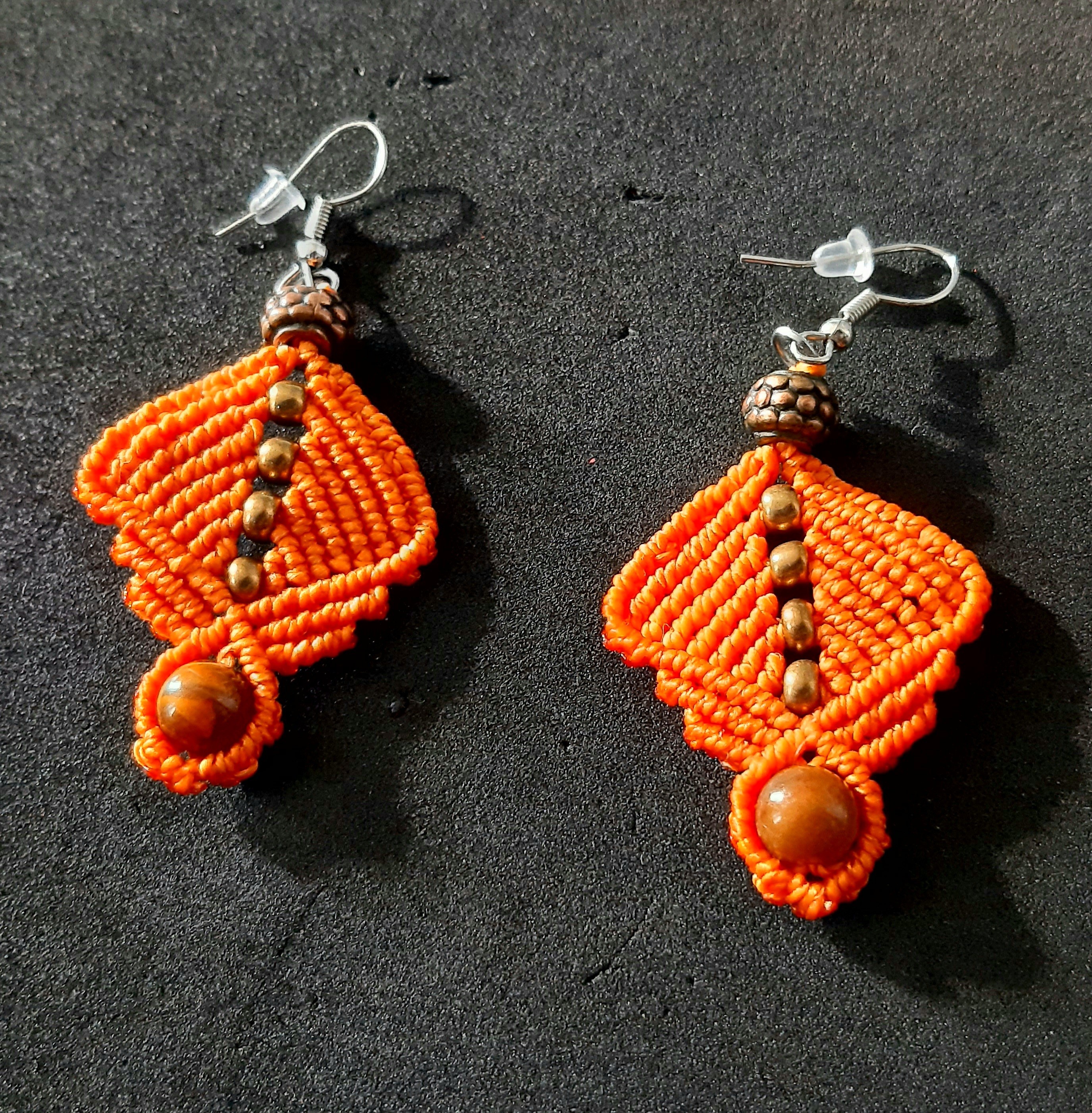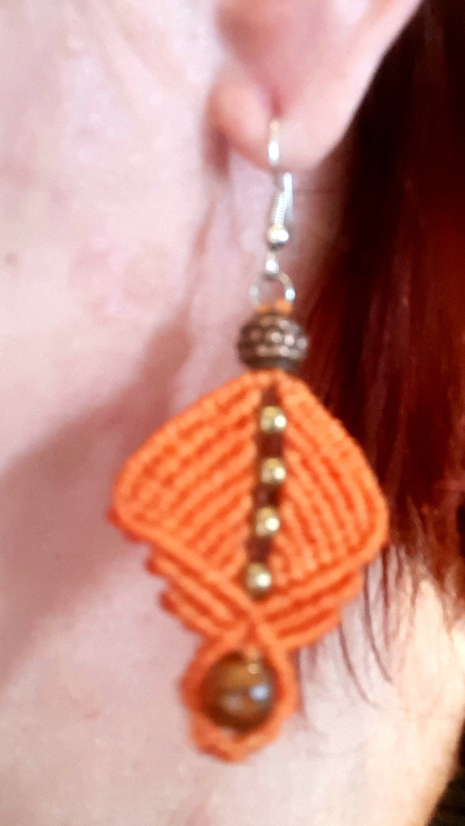 Fils de polyester ciré orange. Perles fantaisies